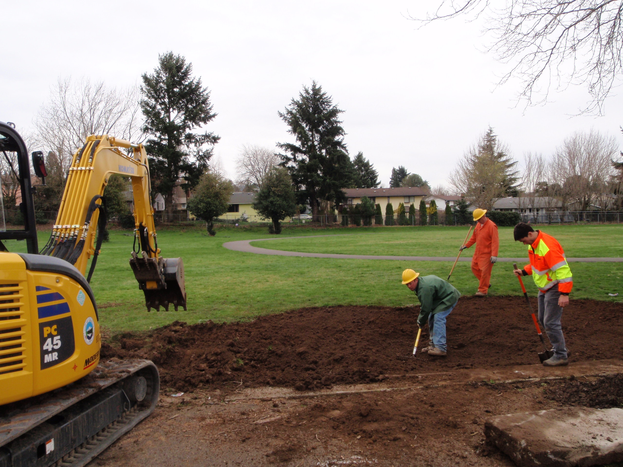 Previous Image Next Image OLYMPUS DIGITAL CAMERA City of Gresham Stormwater Operations staff excavate garden and add soil amendments.