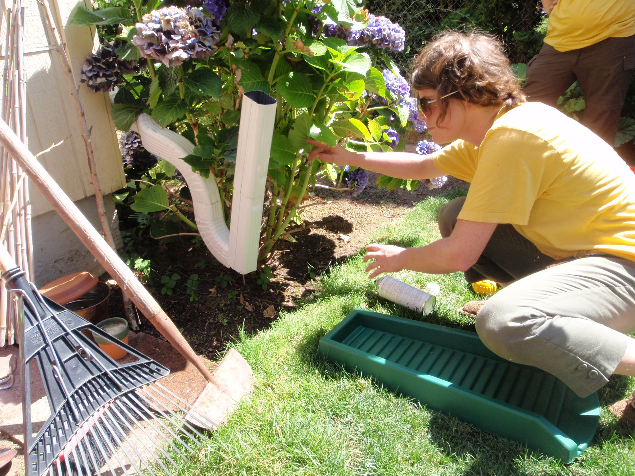 Previous Image Next Image OLYMPUS DIGITAL CAMERA Custom downspout goes around hydrangea and flips up for easy mowing.