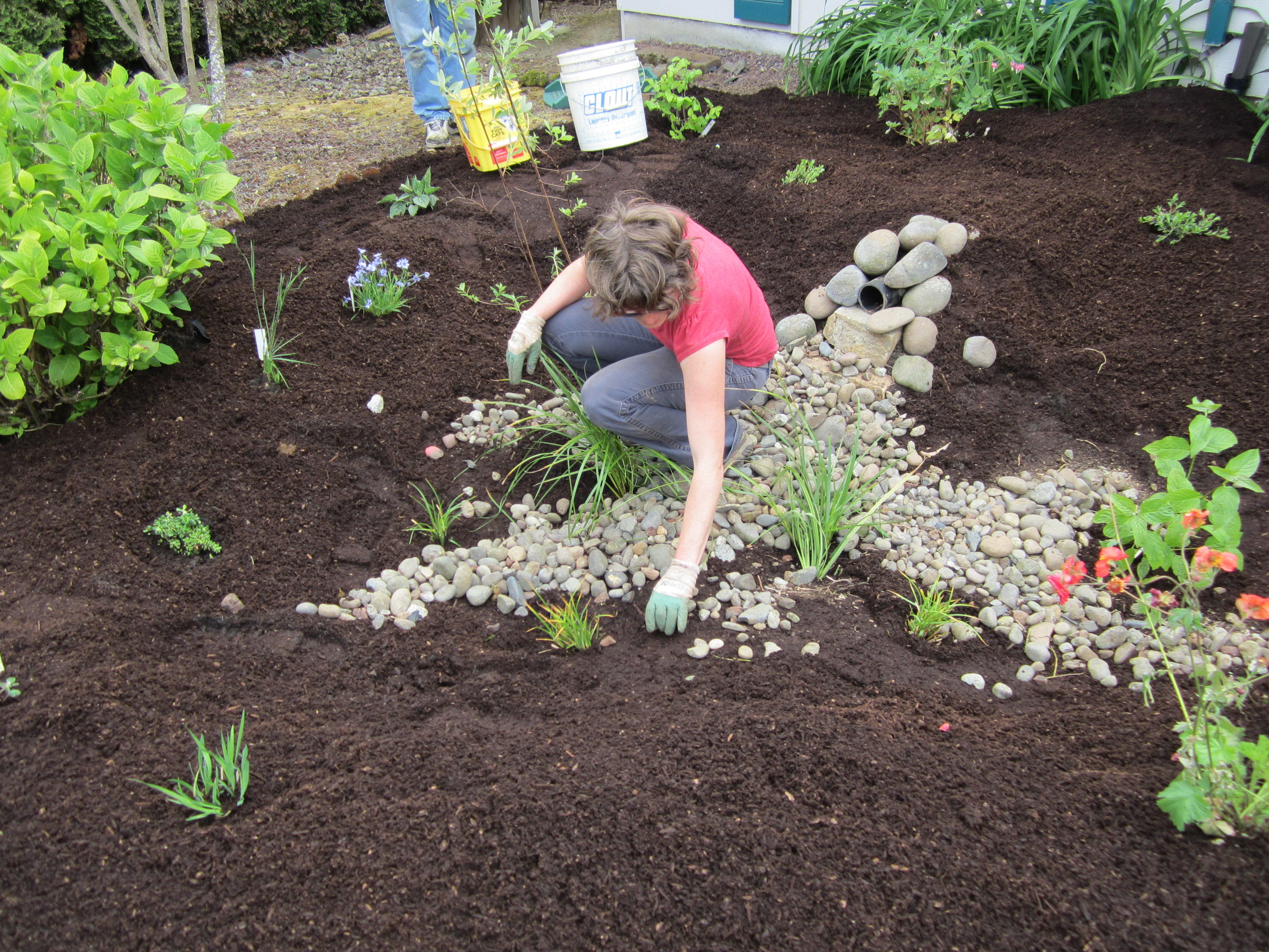 Jamie works on rain garden