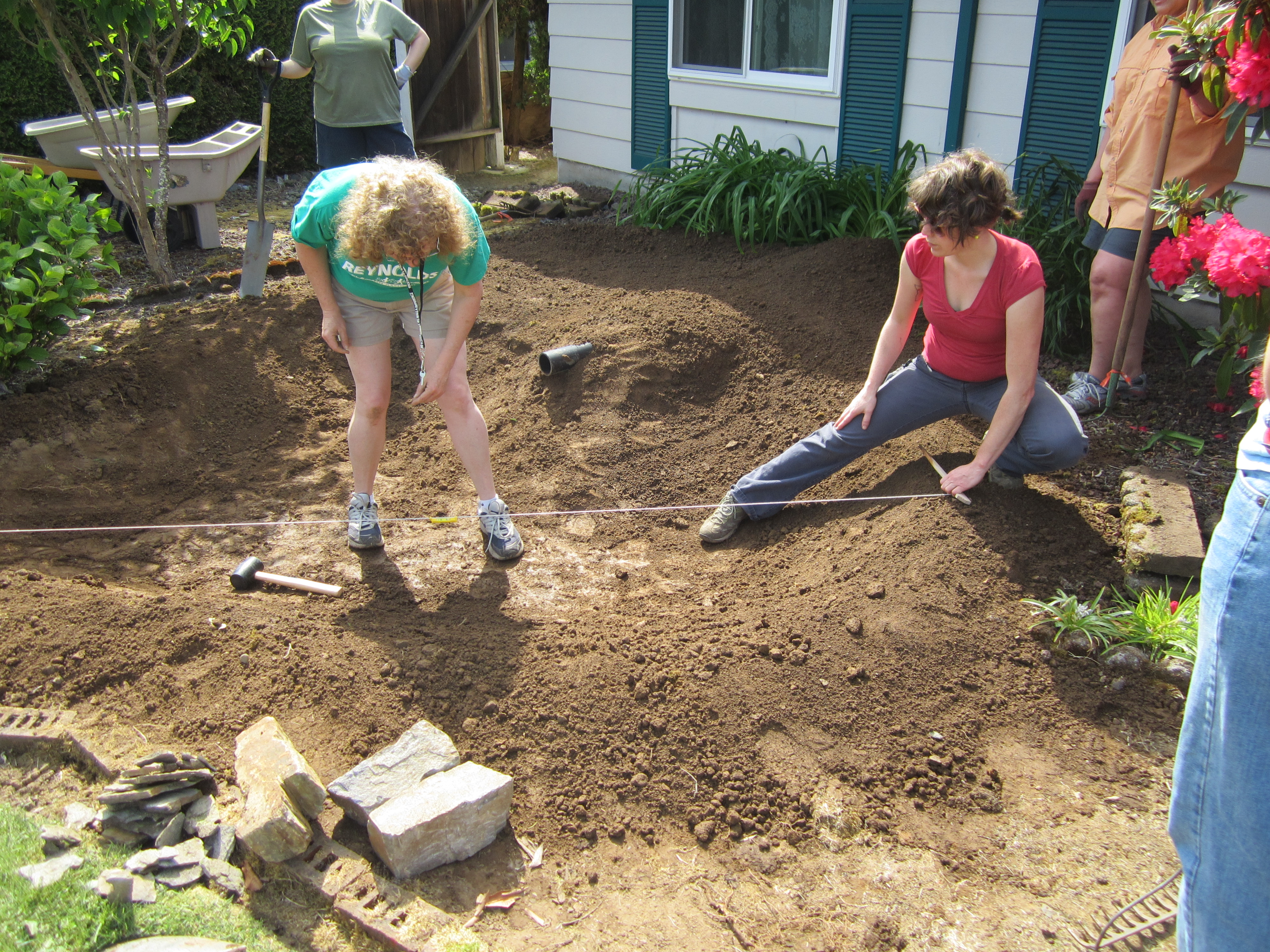 Helping volunteers make sure the rain garden they’re building for their neighbor will overflow correctly during heavy rains.