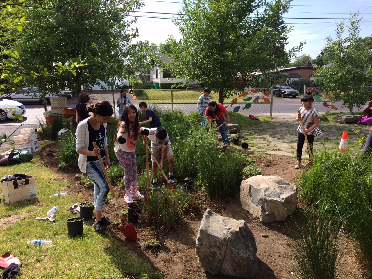 Previous Image Next Image Scott School, Verde Students plant new native plants in their school rain garden (photo Nestor Campos)