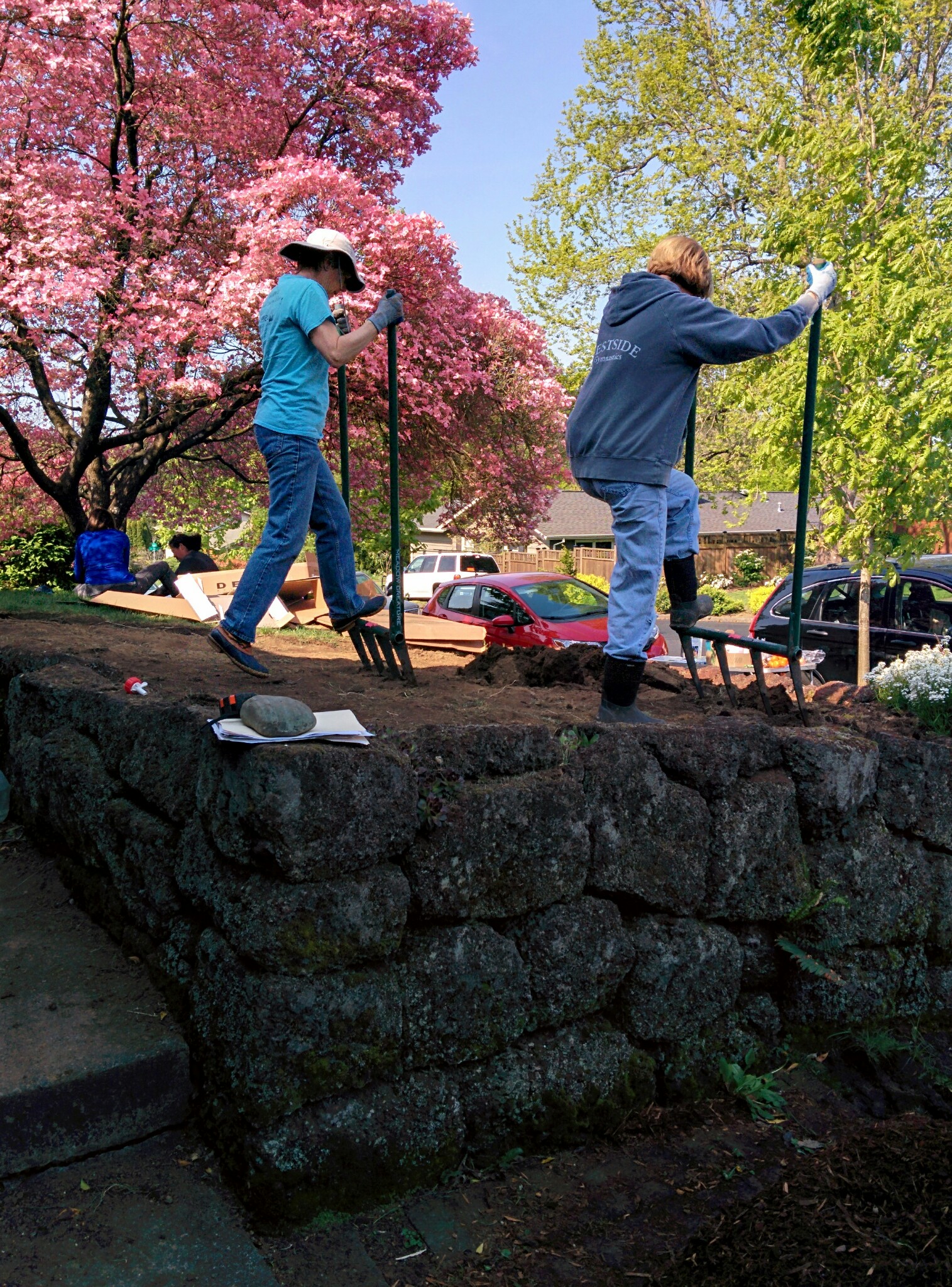 Previous Image Next Image Stormwater Stars hands-on installation, using broad forks to loosen compacted soil